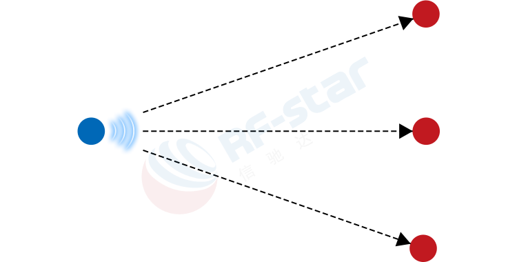 Diffusion de type un-à-plusieurs : Utilise un modèle émetteur/récepteur. Un appareil diffuse et de nombreux appareils peuvent recevoir. Cependant, la communication est unidirectionnelle : les récepteurs ne peuvent pas répondre et tous les appareils reçoivent la diffusion, ce qui compromet la confidentialité et le ciblage.
