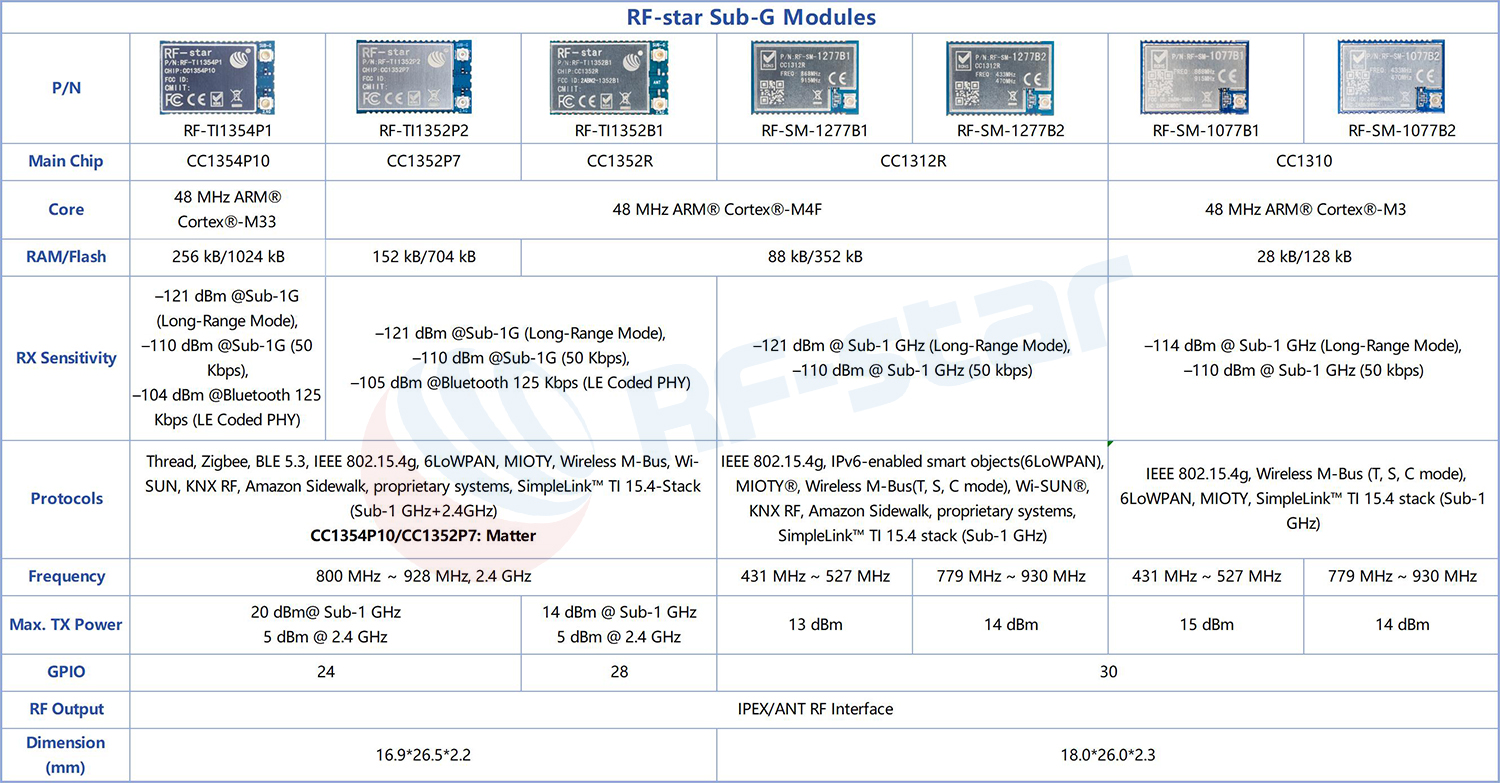 Modules sans fil Sub-1 GHz (Sub-G en abrégé)